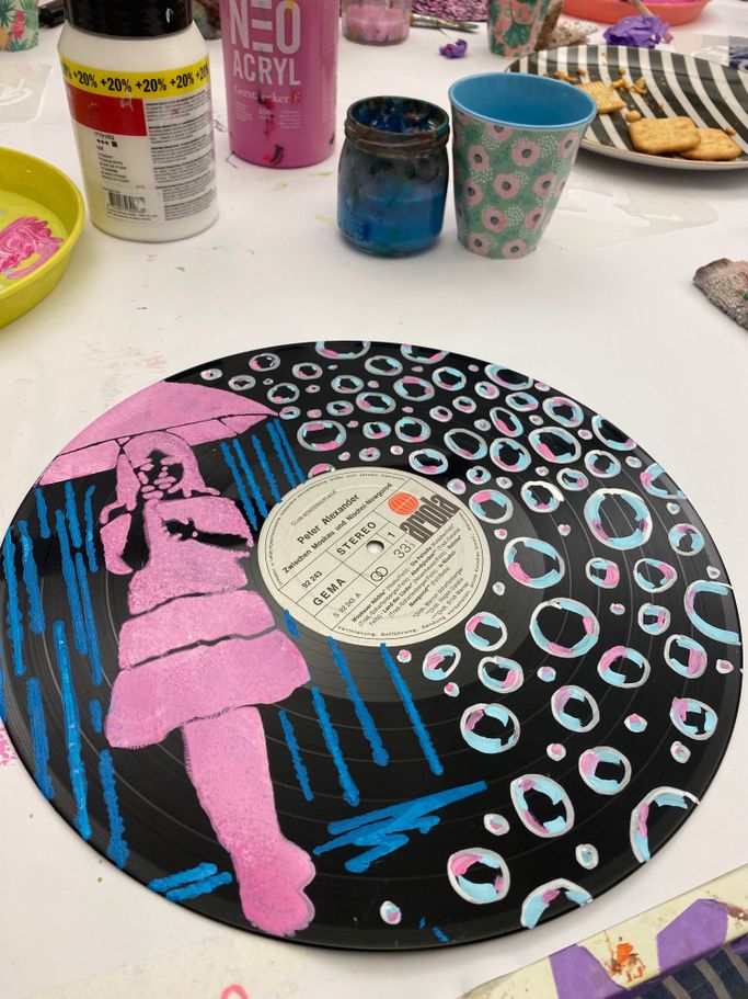 Ob gemeinsame Kunstprojekte, Graffiti auf Schallplatten mit Banksy- oder anderen Motiven oder das Gestalten von Leinwänden – wir bieten vielseitige Workshops, die Kreativität, Zusammenarbeit und Spaß verbinden.